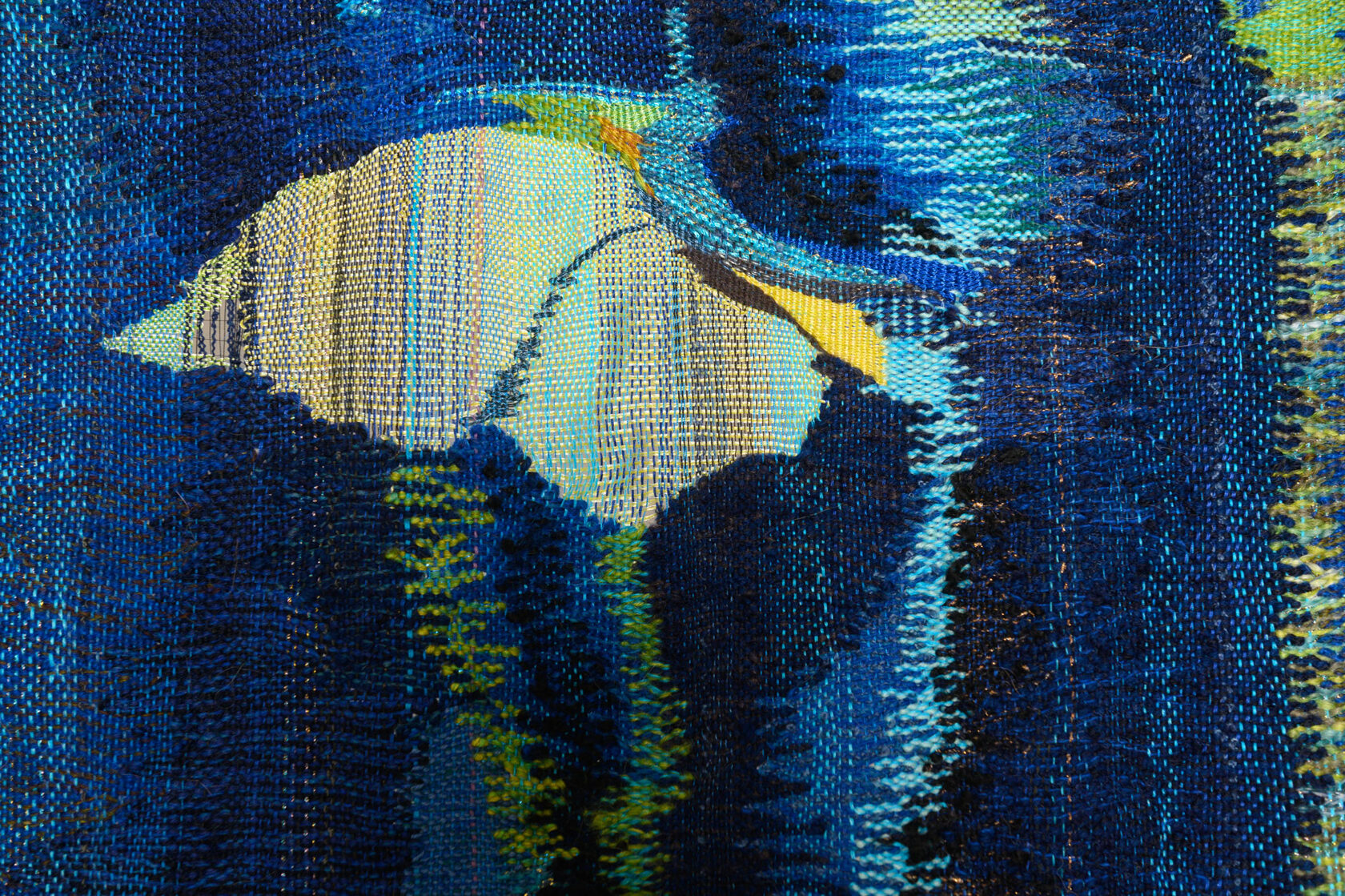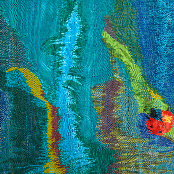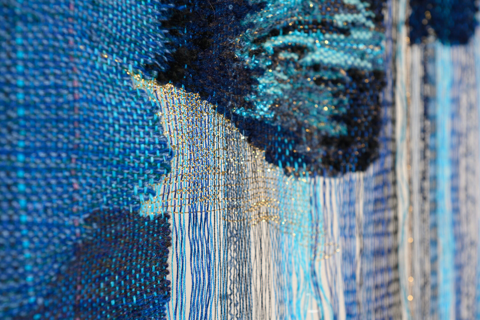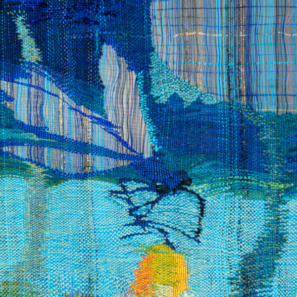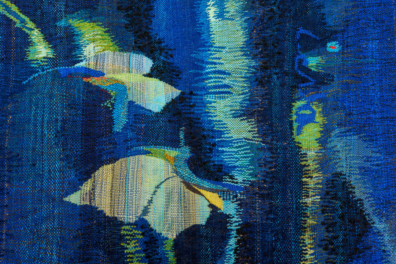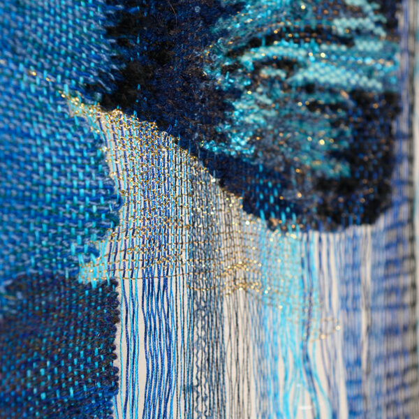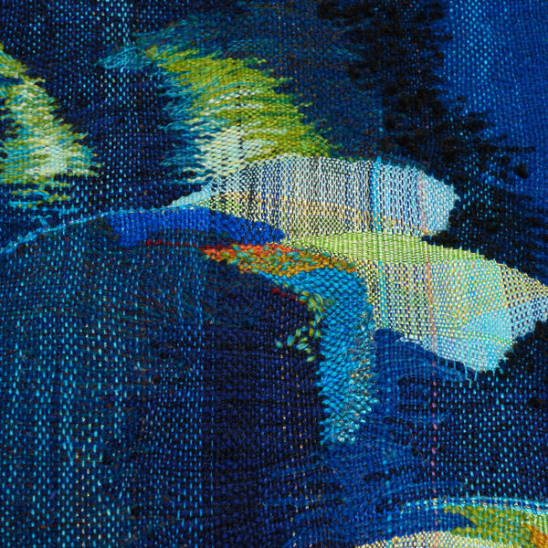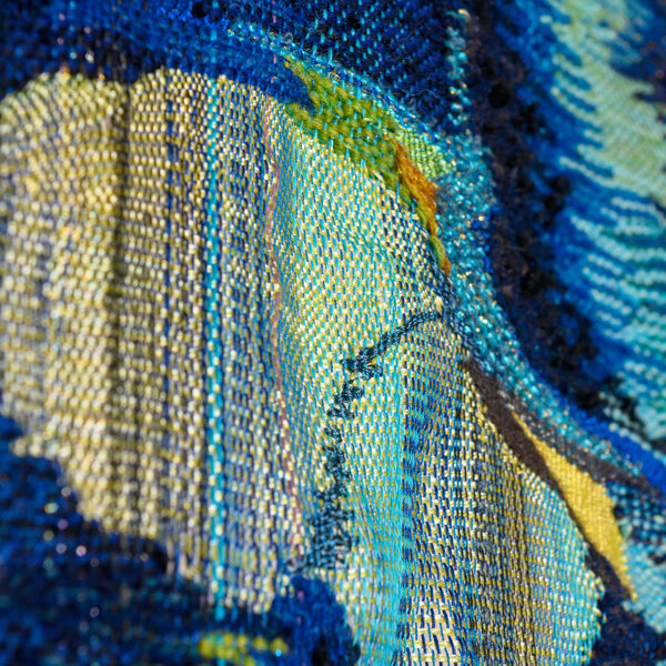 Rooted in 14th-century tapestry traditions, yet combined with an original method that leaves certain areas unwoven, producing three-dimensional shadows that extend beyond the tapestry.