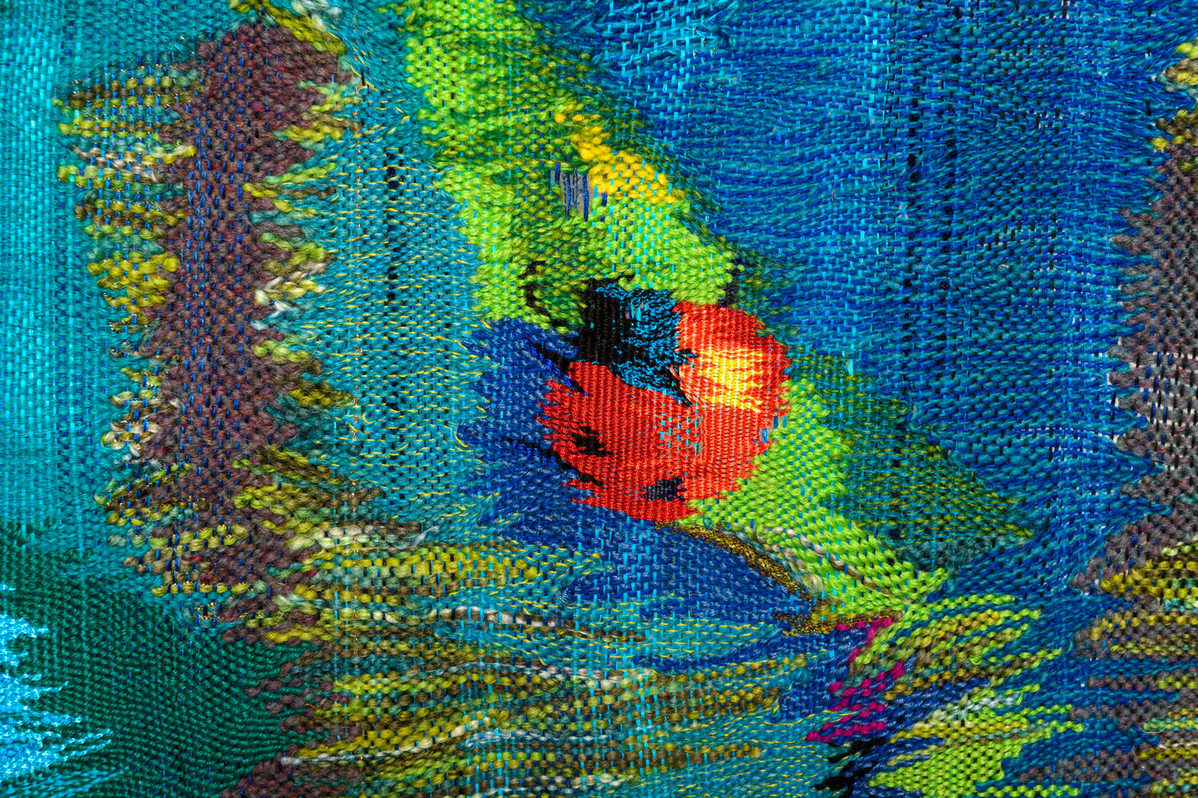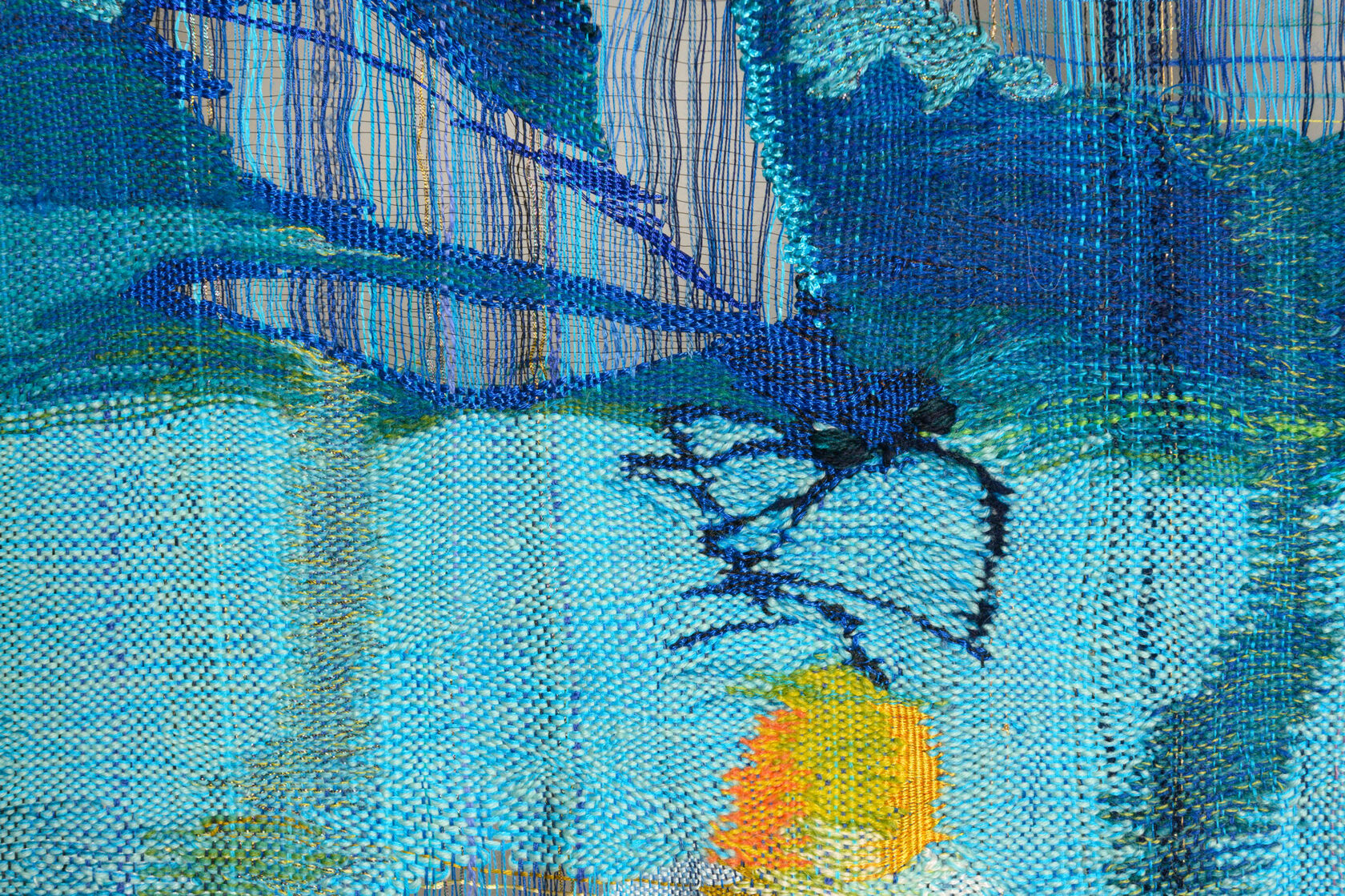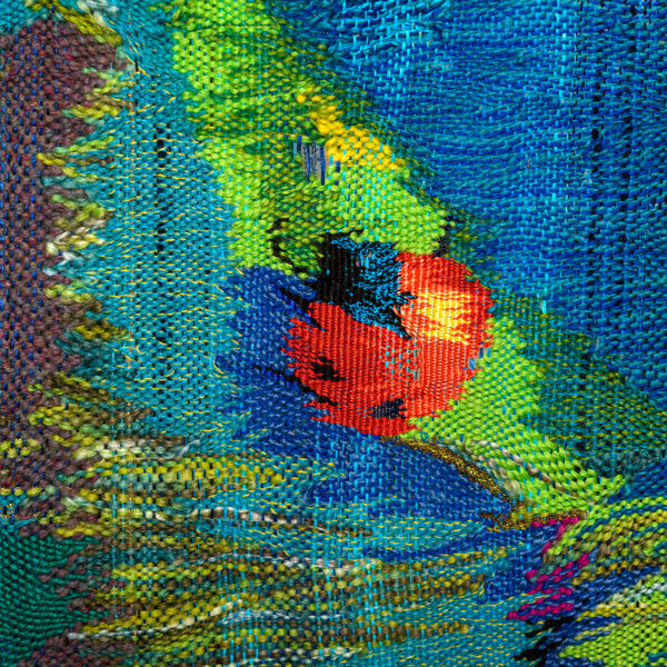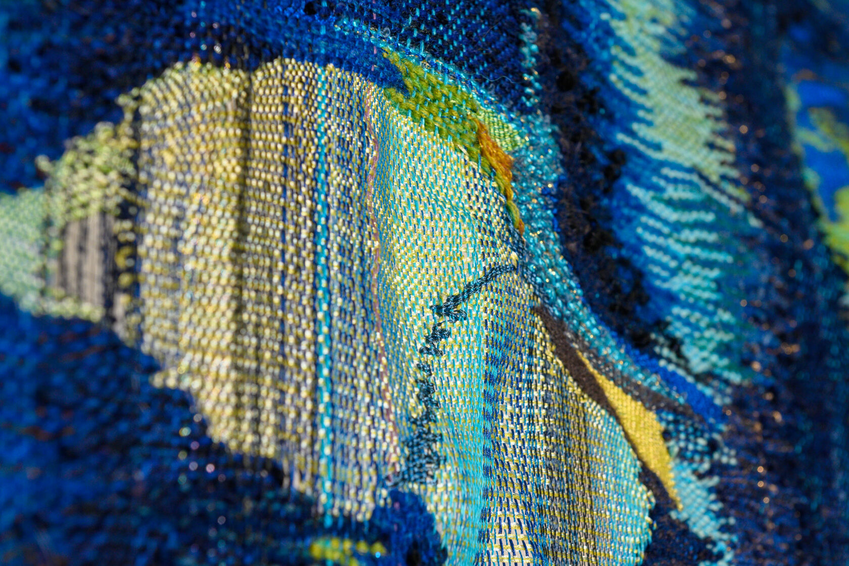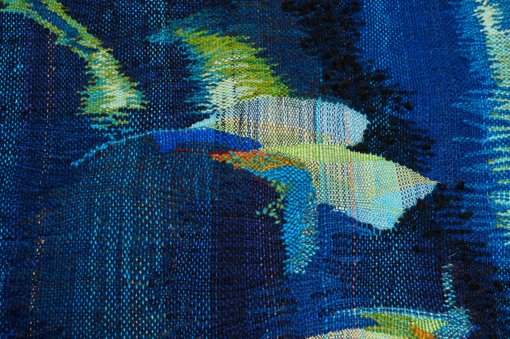Rooted in 14th-century tapestry traditions, yet combined with an original method that leaves certain areas unwoven, producing three-dimensional shadows that extend beyond the tapestry.