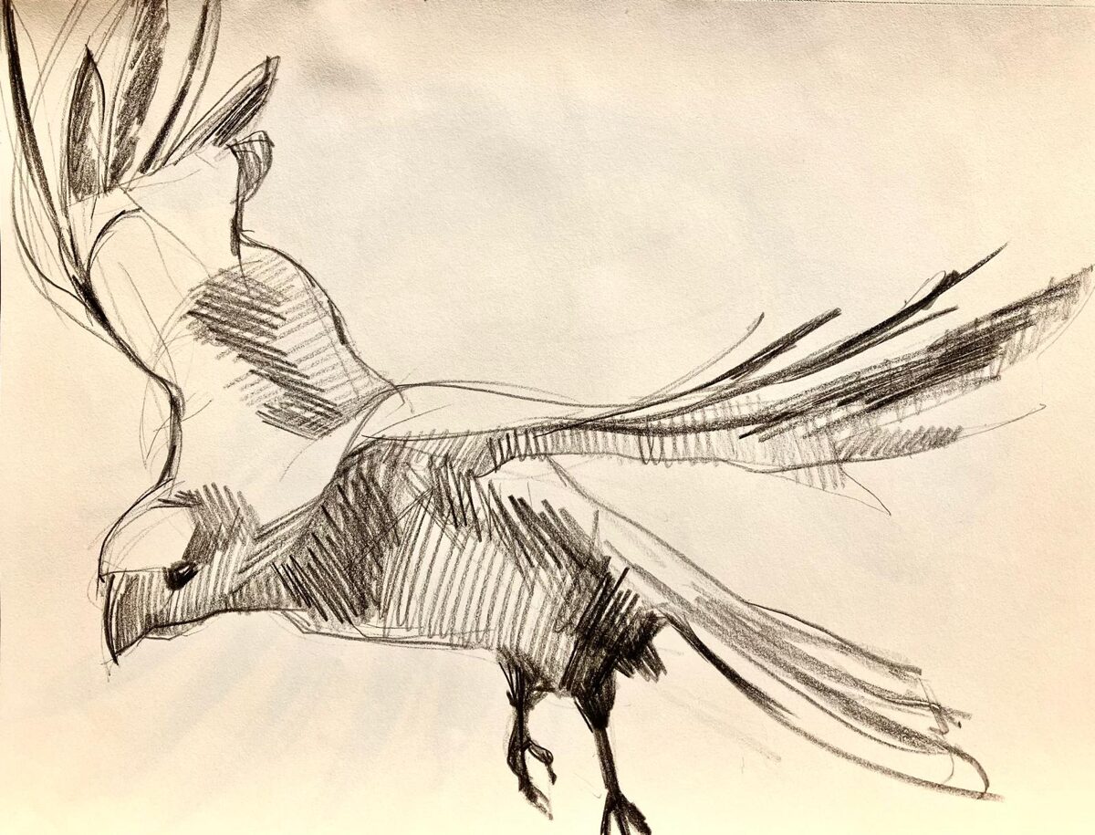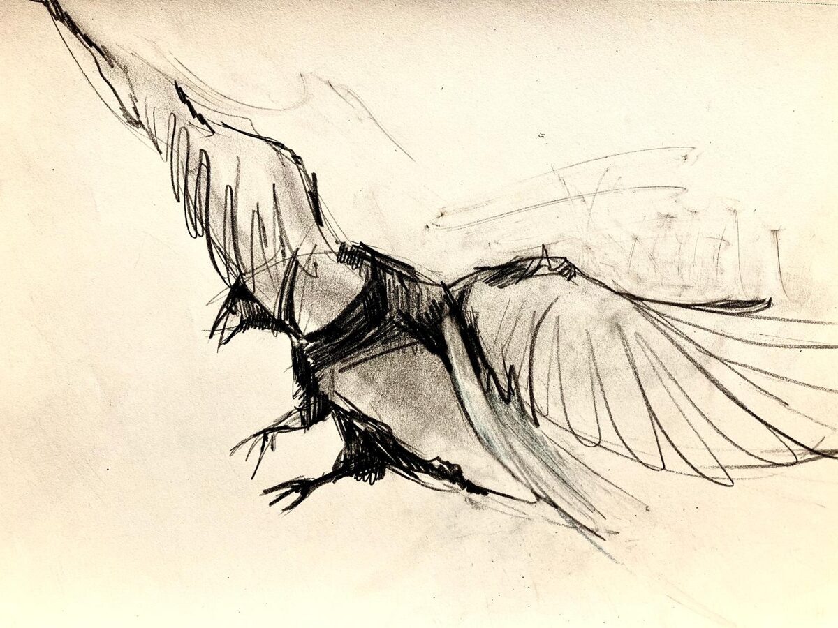 Sometimes I like to exaggerate when sketching, and in this genre, that’s not only desirable—it gives power to what seems like such a simple and humble—trivial—drawing. Exaggeration is also what most often—or usually—captures the viewer’s interest. Just like in the advertising business, what is unusual or out of the ordinary is the key to success and achievement. If the sketches are piled up one on top of the other in folders—that I myself had forgotten about their existence for years—they are interesting to me, but then, encouraged by others, I frame a few as gifts, a small gesture of gratitude. They take on their own separate scale of significance. Some will remain simply as working materials, others I’ll integrate into a larger project (read: work), but others are interesting precisely because of their fleeting lightness.